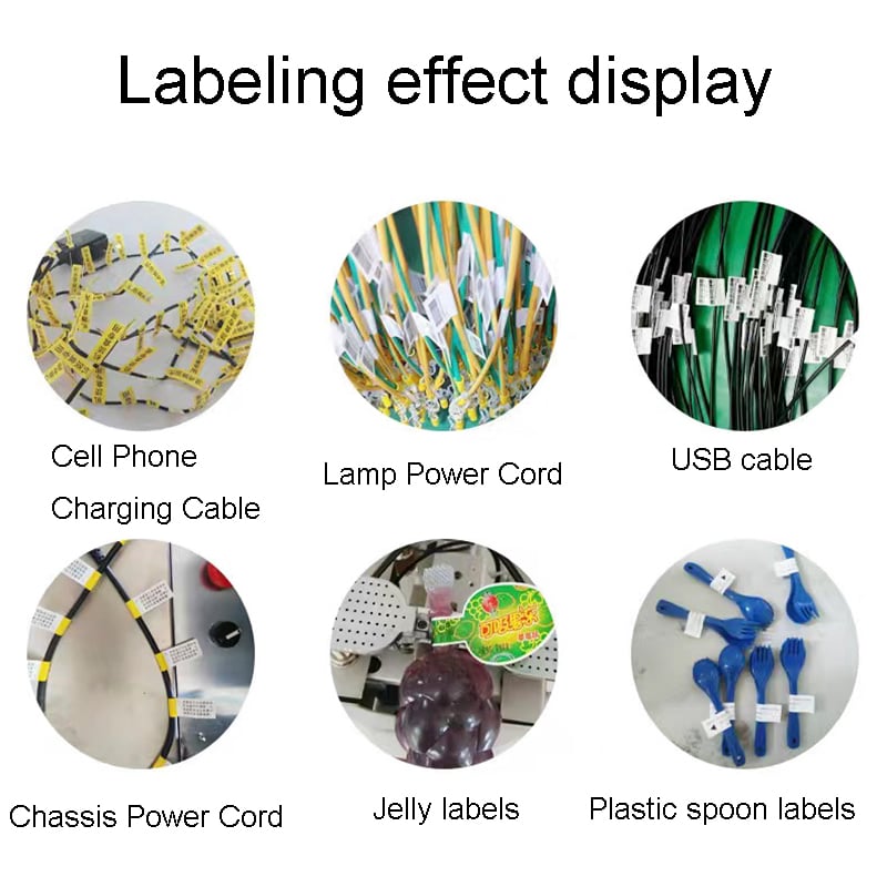 • Round wire, flat wire, plugs on both ends, etc. can be used (the wire does not need to be rotated, and the inner wire of the wire will not be damaged). This not only changes the traditional manual labeling method, improves the efficiency of labeling, improves the disadvantages of manual labeling that is prone to uneven size and wrinkles, but also saves 3-5 labor. Improve production efficiency and solve the advantages of slow manual labeling, insufficient accuracy, personnel changes and high labor costs.